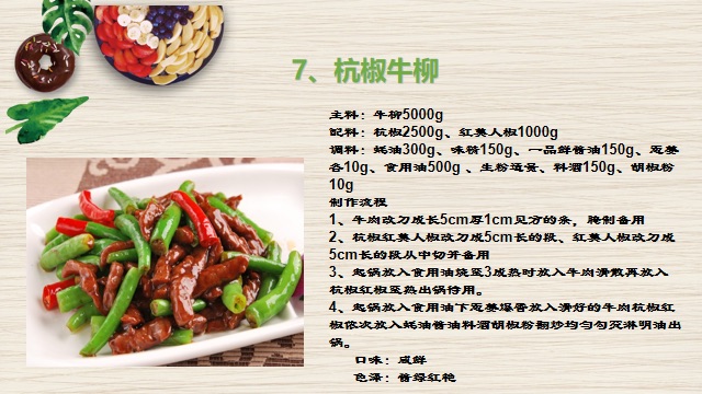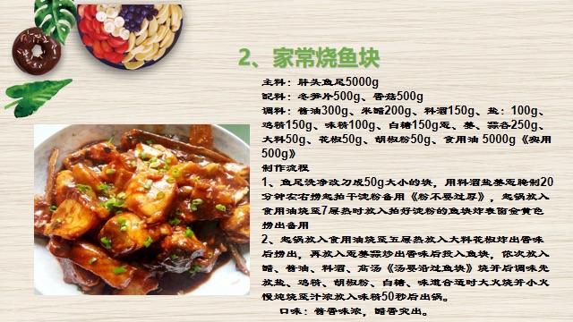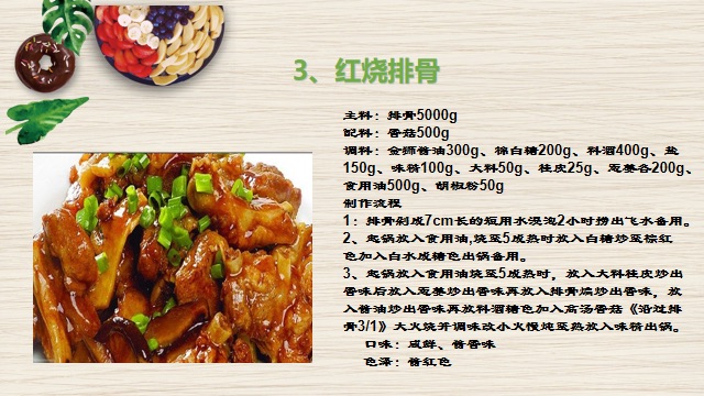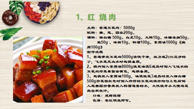 客林餐飲的餐品包含各大菜系,并且有專業的制作流程和量化的制作工藝,下面是本公司招牌葷菜制作標準!